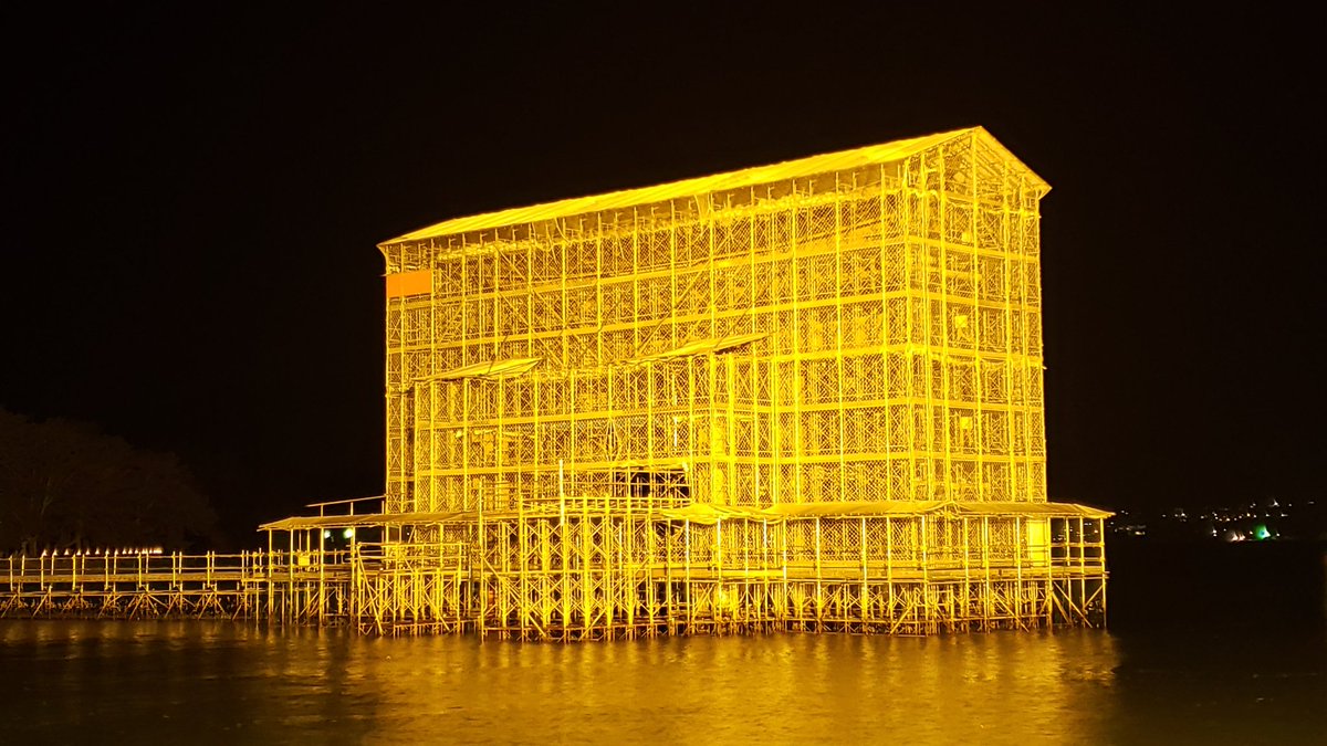 修繕中の宮島 厳島神社の大鳥居がライトアップされている姿が話題に これはレア 芸術的足場 Togetter